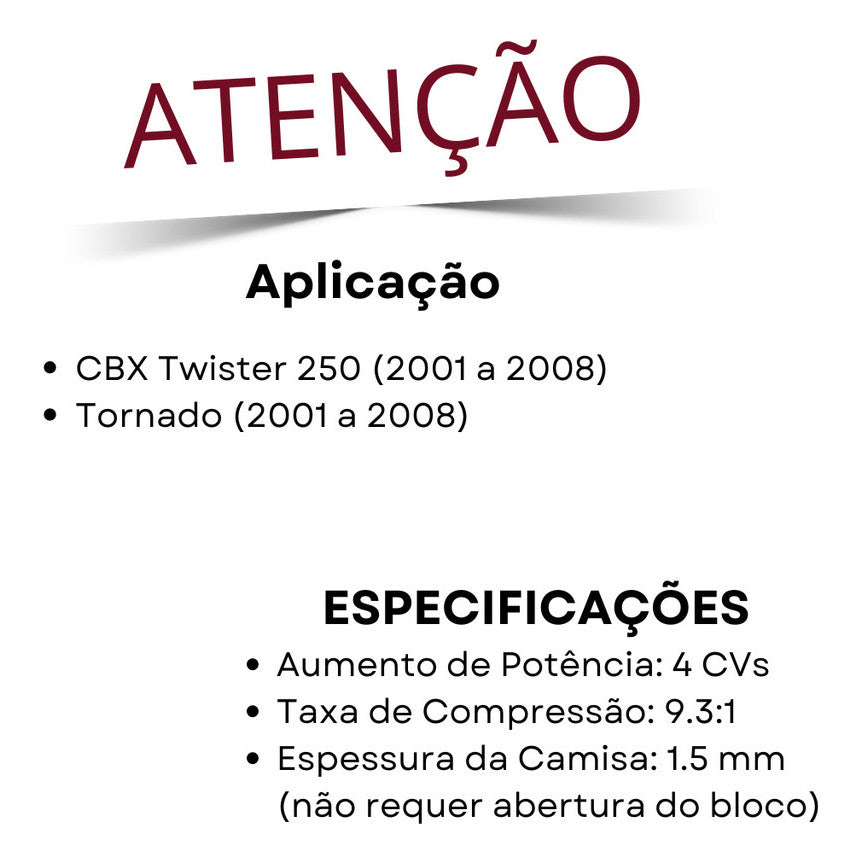 Kit Cilindro Tornado 250 Para 293cc Cbx Twister 250 Para 293cc Vedamotors