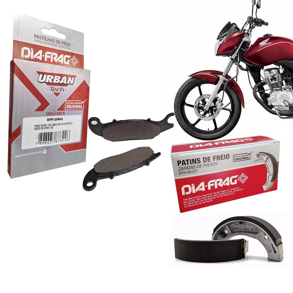 Pastilha Freio Dianteira + Lona Patins Traseiro Cg Titan Cargo Fan 125 150 160 Mix Esd Ex Sem Comb Brake 2009 Ate 2018