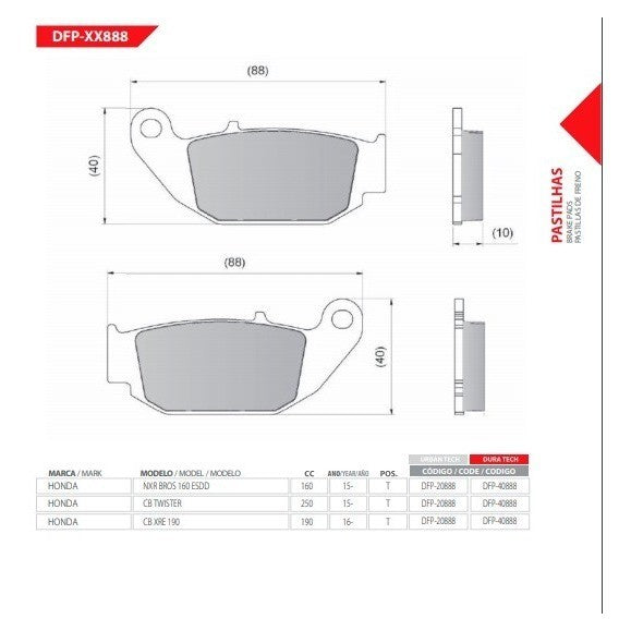 Pastilha Freio Traseira Bros 160 Twister 250 Dfp20888