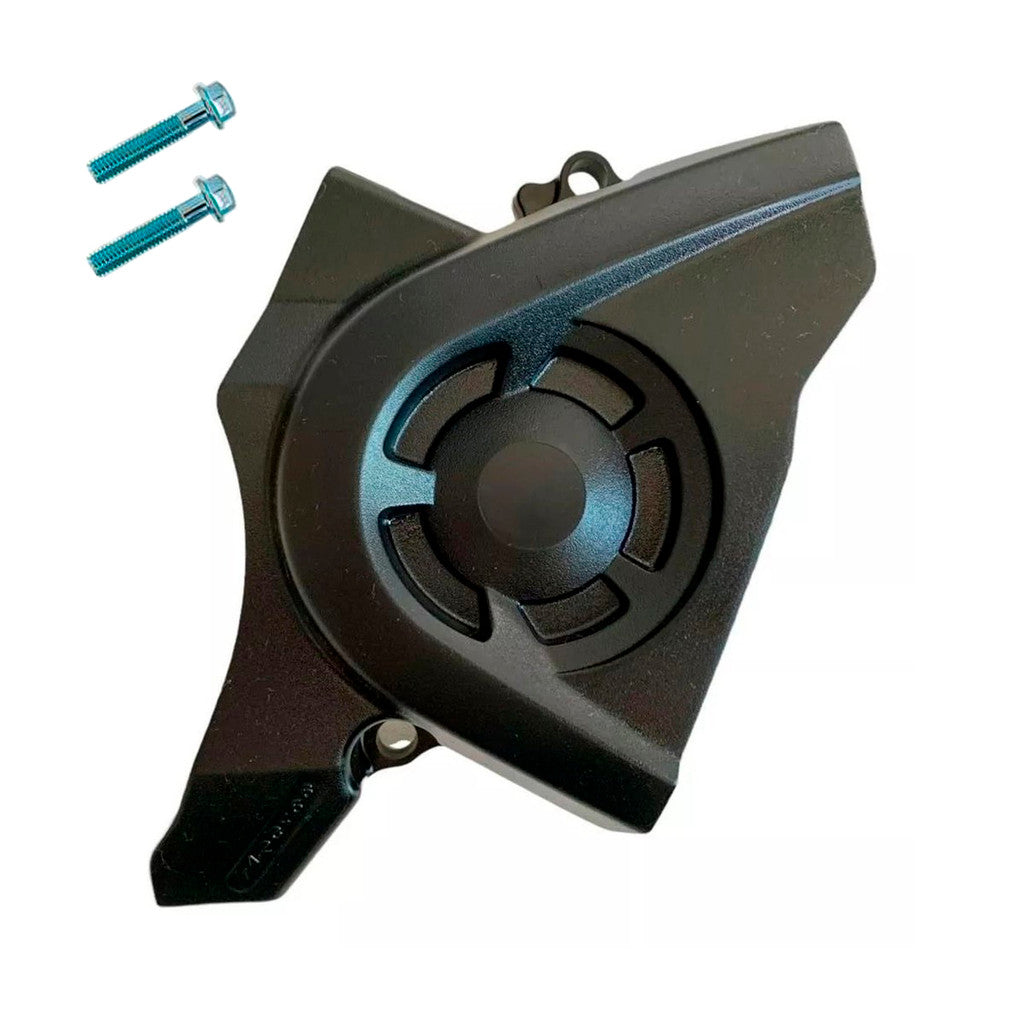 Peça de reposição compatível com a linha Honda CB 250F Twister, ideal para substituição da tampa do pinhão danificada ou desgastada. Produto novo, com excelente acabamento e pronto para instalação.